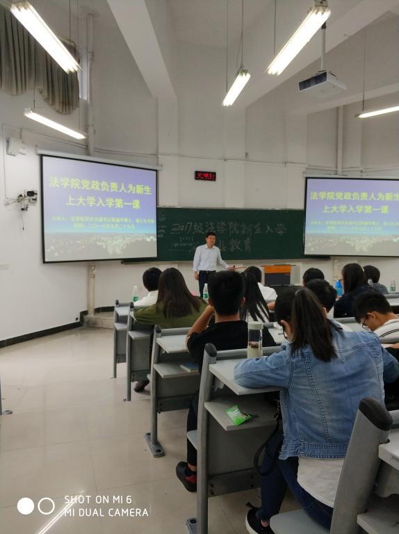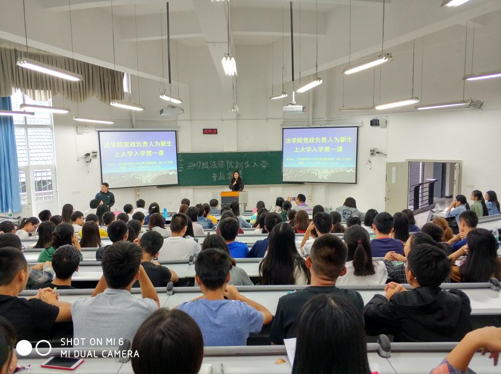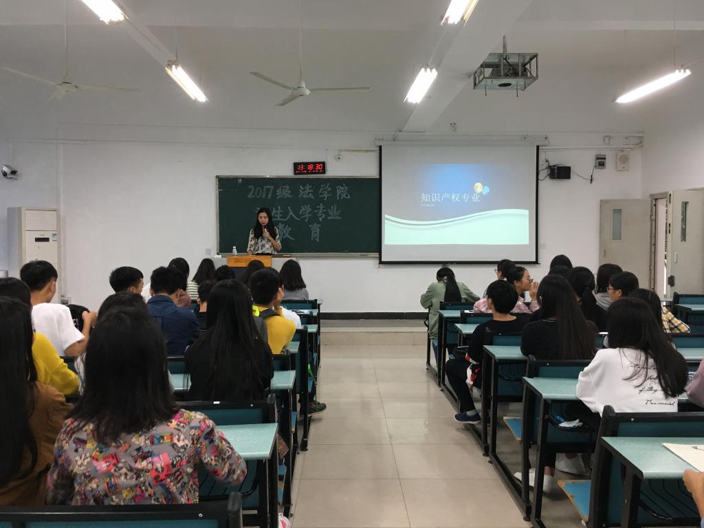 罗观老师主持了本次活动。首先由我院党总支书记李自维教授致辞,李书记在讲话中表达了对同学们的殷切期望,希望同学们牢记我院“崇法明德,卓思睿行”的院训,用实际行动将其传承;随后,法学院院长杨和义教授强调在大学生活中,同学们要坦诚做人、诚实做事,在实践中不断摸索学习方式,善于运用思辨之方法,并鼓励同学们积极利用我院学习资源;接下来我院党总支副书记简福平博士发表讲话,简书记表达了在今后的学习中为大家服务的愿望,鼓励同学们勇敢追求梦想;我院副院长刘勇教授在随后的讲话中指出,希望同学们树立对法学专业的信心,保持学习兴趣,并鼓励同学们积极参加科研活动,为今后的工作打下良好的基础。随后,我院各部门负责老师介绍了自己所负责工作的主要内容及联系方式,希望在今后的学习中为同学们提供帮助。最后法学系主任马迅博士与知识产权系主任张琨蓓分别为法学系与知识产权系新生进行专业教育。