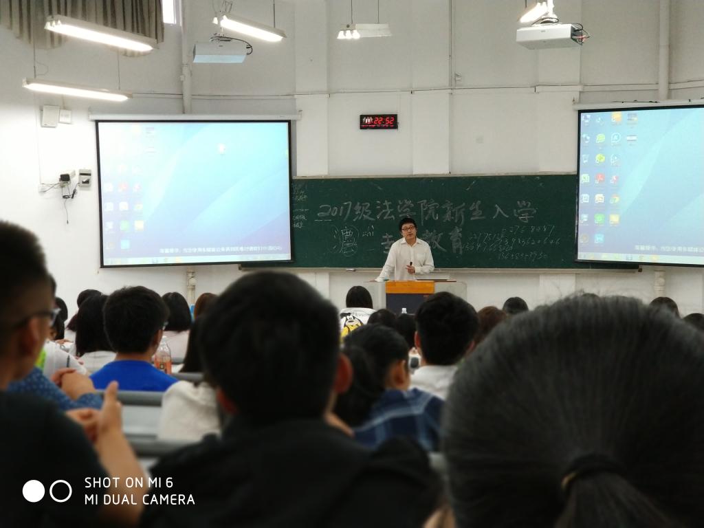 (法学系主任马迅老师为法学专业同学进行专业教育)