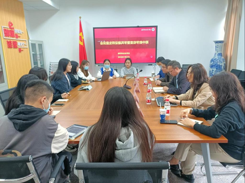 为进一步加强教学管理和质量监控,关心了解学生的思想动态,收集学生对学院教育、管理、服务等方面的意见和建议,建立稳定的教学秩序。我院于2022年10月28日下午,分别在90407会议室、90429会议室召开法学类、社会学类期中教学检查暨学风建设师生座谈会,校院督导李喜燕、王建萍、张晓娟、钱颖萍,系主任公杰、焦海洋、吴永波,以及20级、21级法学和社会学30余名学生代表参加。座谈会由副书记陈琛、副院长侯明喜主持。