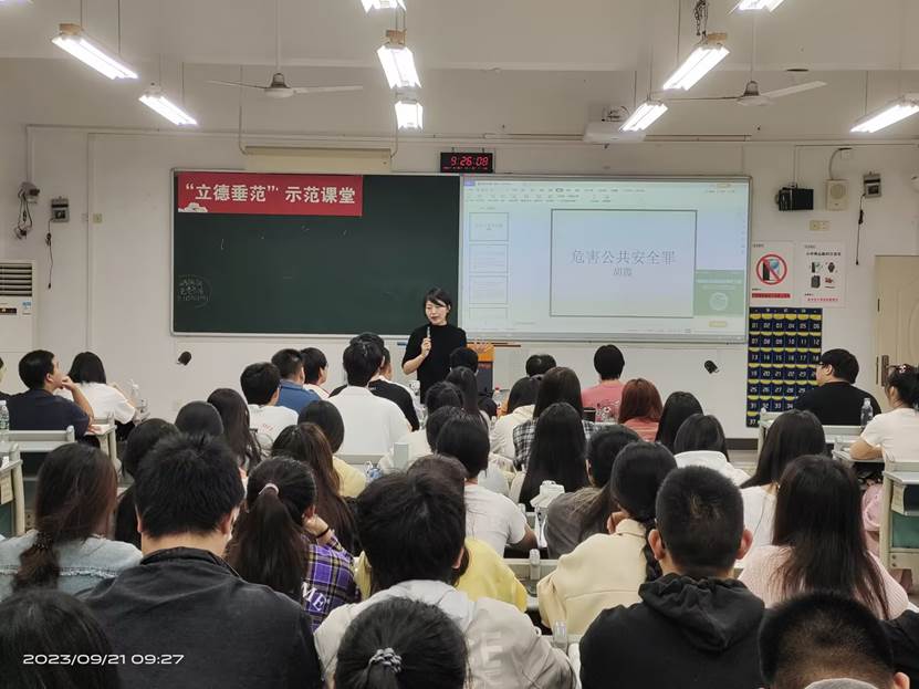 胡霞老师通过对社会热点案例的解读,向同学们讲述了危害公共安全罪的核心概念,引导同学们思考“危险方法”和“公共安全”的定义。胡老师通过将危害公共安全罪与侵犯人身权益的犯罪进行比较,以交通肇事罪为例,引导同学们积极思考,进一步让同学们深刻理解危害公共安全罪的定义。同学们积极参与课堂互动,踊跃发言。胡老师在教学过程中不仅注重学生学习知识的吸收,而且十分注重培养同学们发现问题、思考问题的能力。