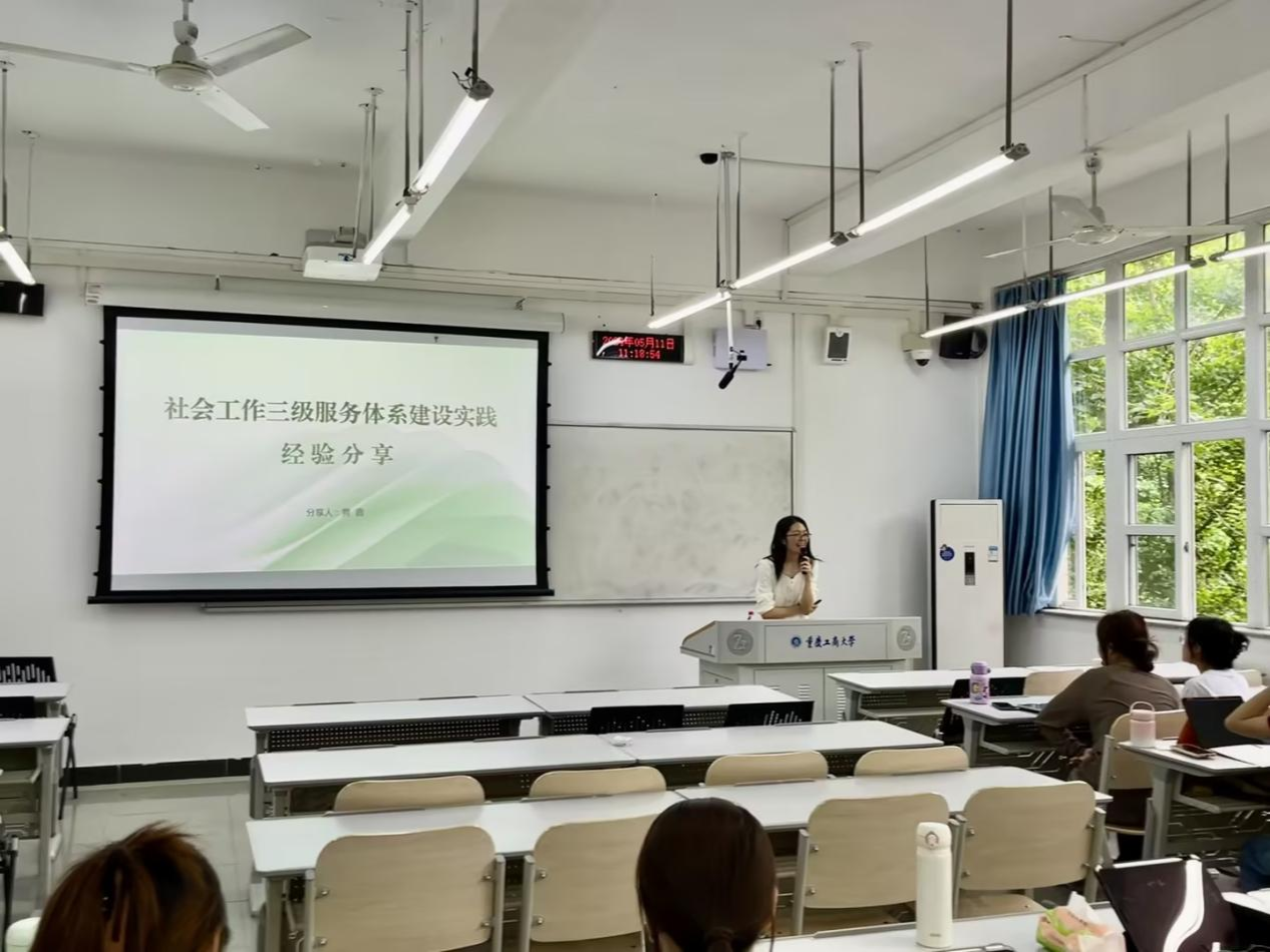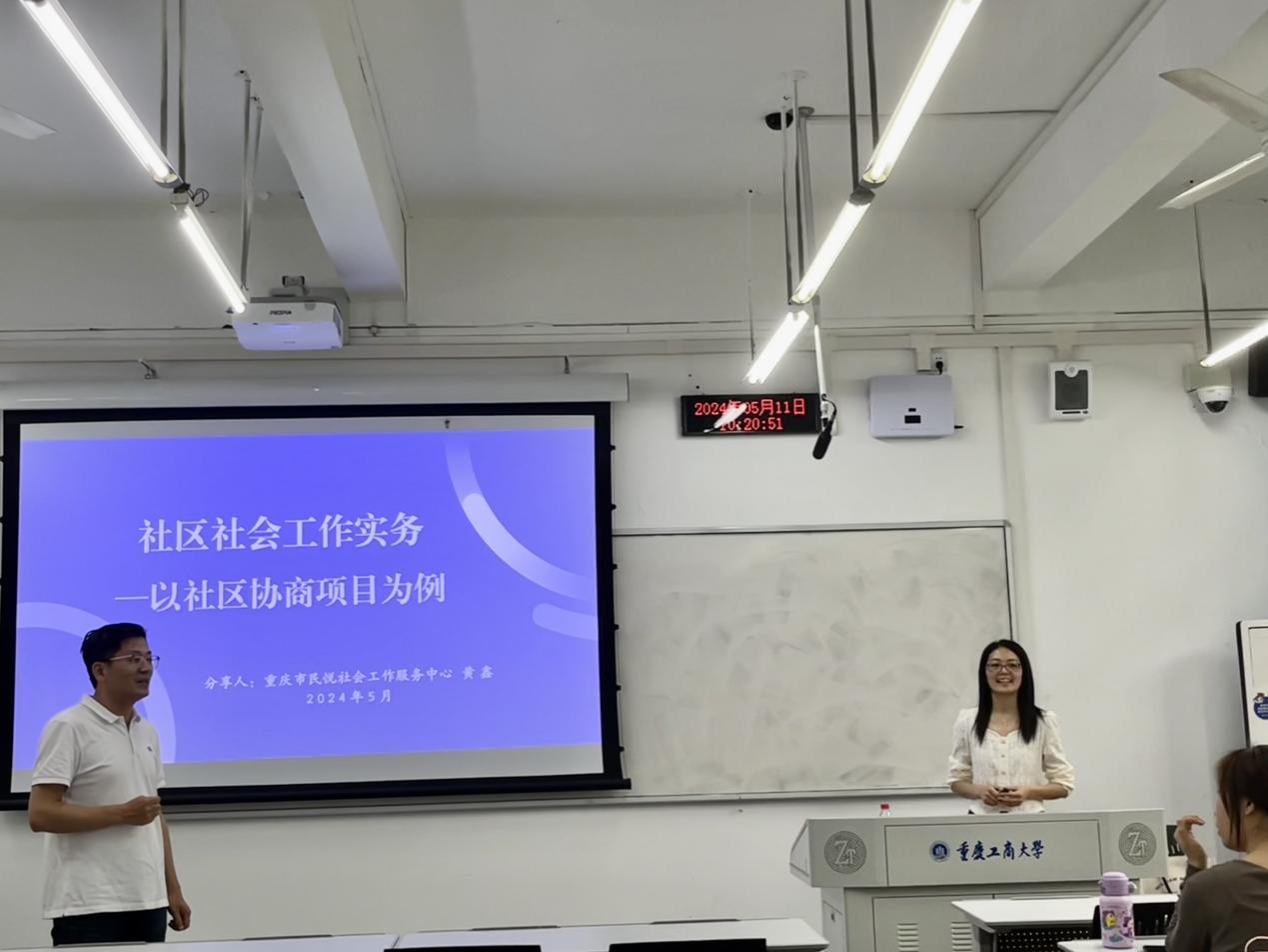 为了推动专业教育与行业需求的结合,理论教学与实践应用的有机融合,以及课堂学习与实际操作的良性互动,2024年5月11日,我院研究生课程《社区社会工作理论与实务》邀请重庆市民悦社会工作服务中心的社工一起开展以“社区社会工作实务”和“社会工作三级服务体系的经验分享”为主题的移动课堂。本次移动课堂由授课教师程鹏立主持,项目主管黄鑫主讲,我院2023级社会工作研究生参与。