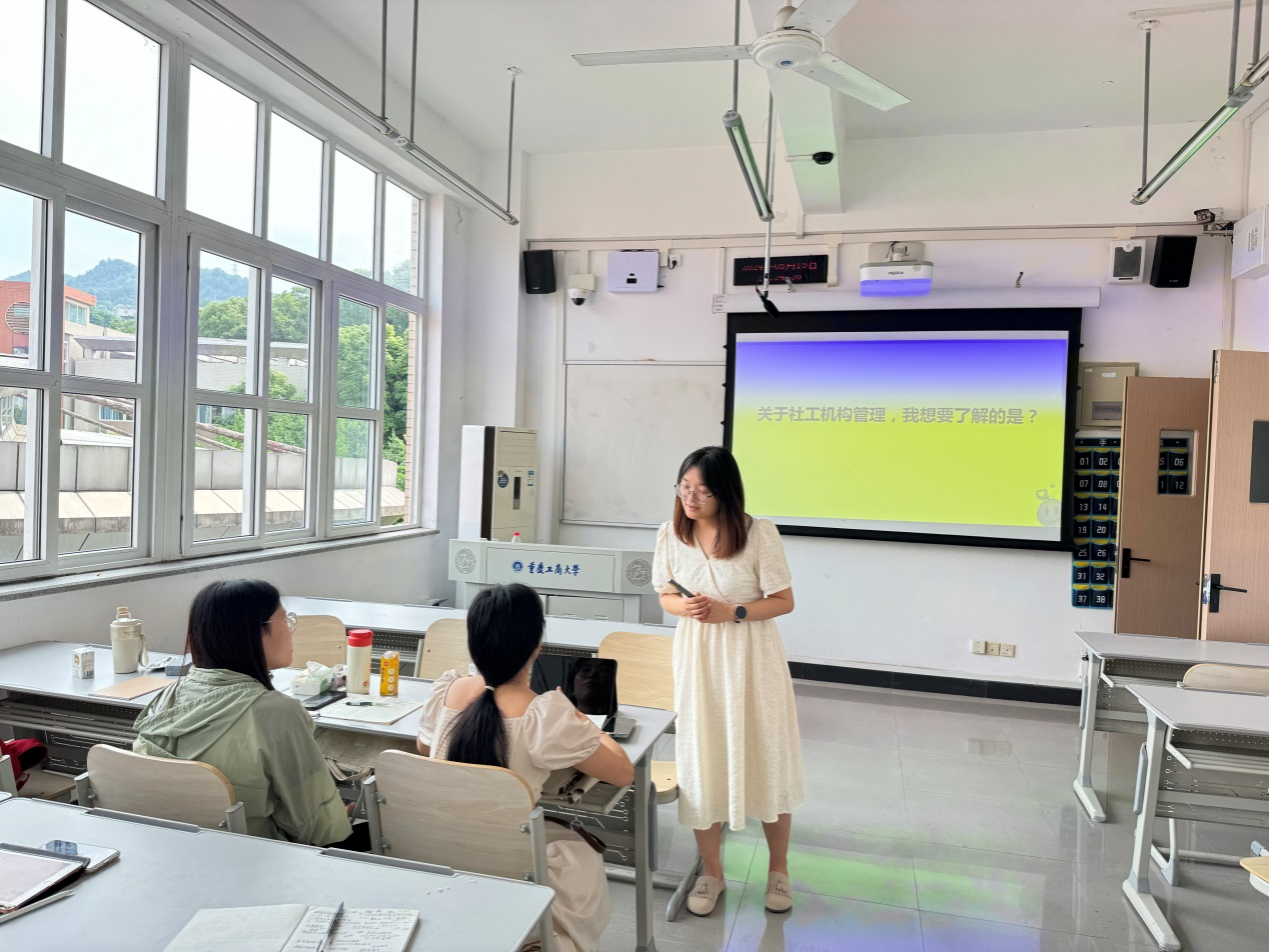 为贯彻学院课堂教学改革指导思想,促进“课堂教学和实践教学”有机结合,提高人才培养质量,2024年05月15日上午,太阳集团tyc9728ok138cn太阳集团《社会组织理论与实务》课程特邀重庆市合川区三好服务中心主任何春燕开展以“社工机构管理与项目管理”为主题的移动课堂。本次移动课堂由授课教师程鹏立教授主持、2023级MSW学生参与。