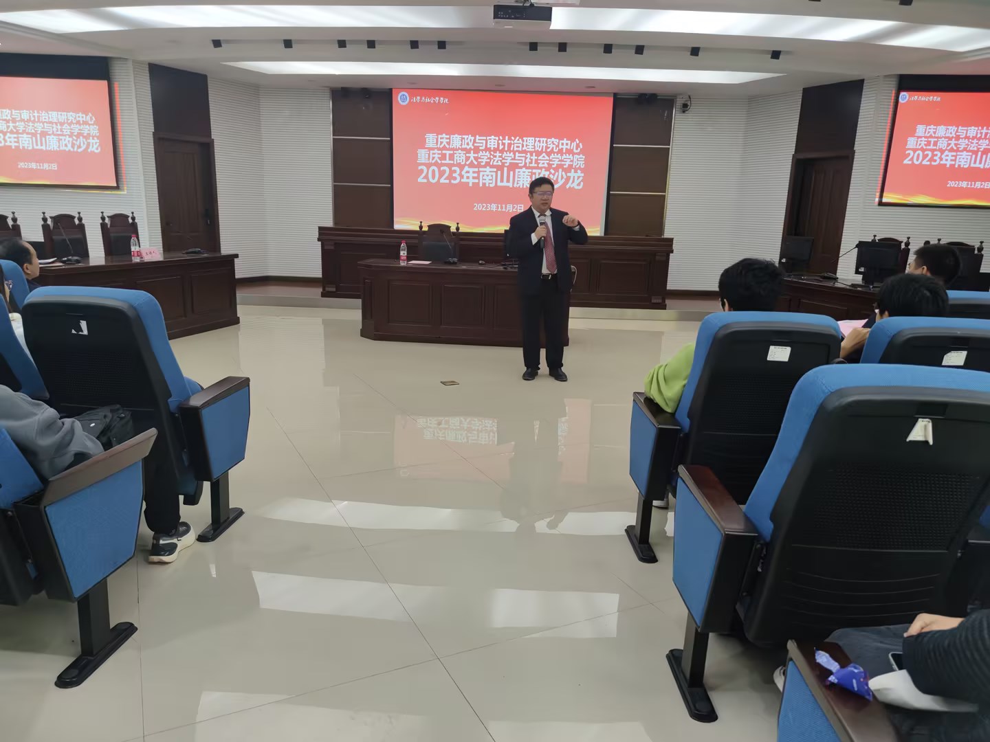 2023年11月2日,重庆廉政与审计治理研究中心“南山廉政”学术论坛在太阳集团tyc9728慧智楼模拟法庭举办。本次活动由太阳集团tyc9728纪检监察室、重庆廉政与审计治理研究中心、太阳集团tyc9728ok138cn太阳集团联合举办,校内外相关领域知名专家、学者,学校相关师生代表参加了论坛。