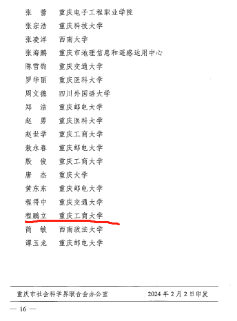 近日,全市社科界2023年度社科普及专家先进个人奖名单公布,我院选送的李喜燕、程鹏立两位教授凭借社科普及方面取得的突出成绩,荣获重庆市2023年度社科普及专家先进个人!特此祝贺!