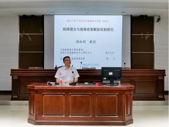2024年5月28日,学院特邀中国社会学会理事、中国社会保障学会理事、中国残疾人事业发展研究会常务理事兼副秘书长、深圳大学周林刚教授为我院师生开展主题为《残障理念与残障政策赋能机制研究》的学术讲座。参与讲座的有社会学系主任罗兆均,蒙艺、张东、袁博、李喜燕等教师,以及社会学和社会工作本科和硕士学生。讲座由副院长侯明喜主持。