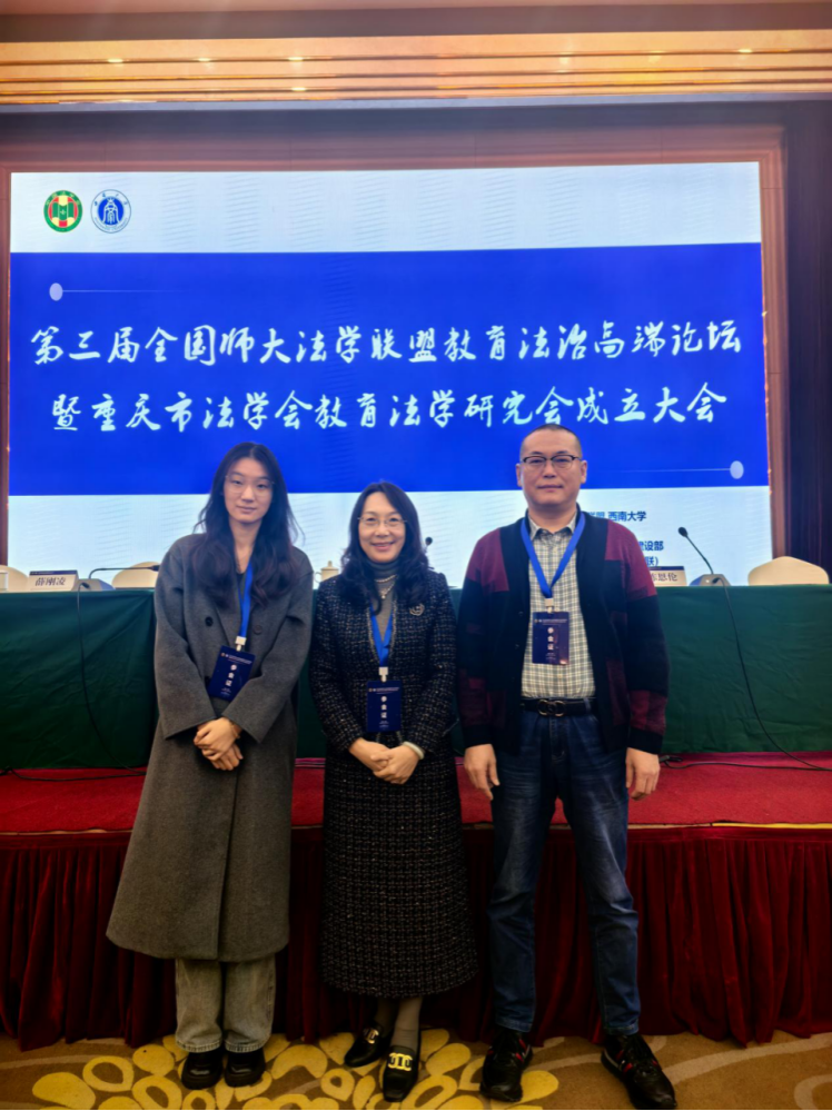 2024年11月17日,第三届全国师大法学联盟教育法治高端论坛暨重庆市法学会教育法学研究会成立大会在北碚召开,会议由全国师大联盟、西南大学主办,来自全国各地的专家学者等共计二百余人参会。
