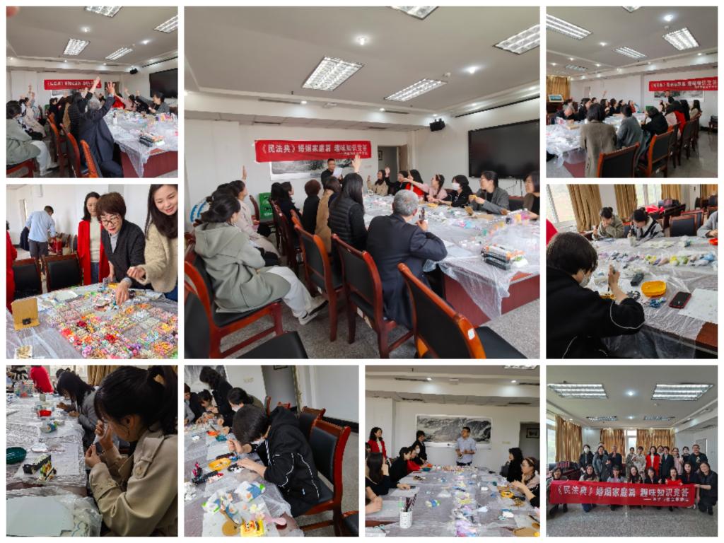 为牢固树立教职工的婚姻家庭意识,引导教职工建立良好的家庭氛围,同时贯彻落实党中央关于坚持男女平等基本国策,在第113个国际妇女节来临之际,法社学院于2023年3月8日举办了“《民法典》婚姻家庭编 趣味知识竞答”为主题的工会活动。