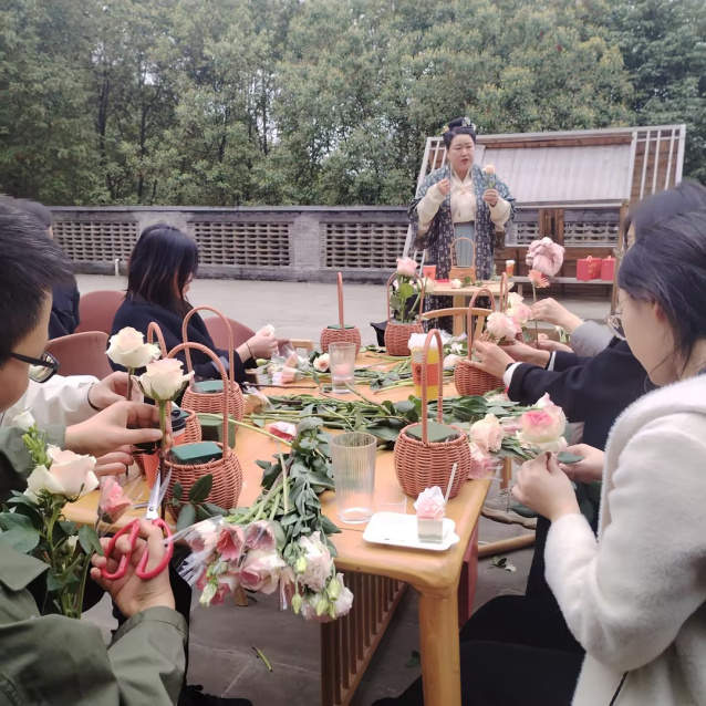 花艺老师讲解了花艺的相关知识,进行插花教学。教职工们跟随花艺老师的步骤,充分发挥创造力,精心挑选花枝,巧妙构思造型。经过一番忙碌,原本普通的花材在他们手中变成了一件件精美的花艺作品,有的优雅简约,有的绚丽多彩,各具特色,展现出独特的艺术魅力。最后,花艺老师对教职工的作品进行点评。