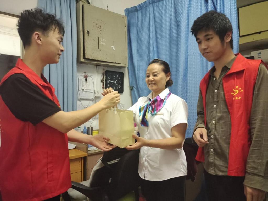 志愿者们为学校宿管工作人员、环卫工人、食堂员工送去劳动节慰问品代表学院师生感谢他们长期以来为学校公寓管理、环境美化、食品安全等方面做出的贡献同时志愿者们通过协助校内基层工作人员完成一天的工作事务,体会劳动人民的艰辛与不易
