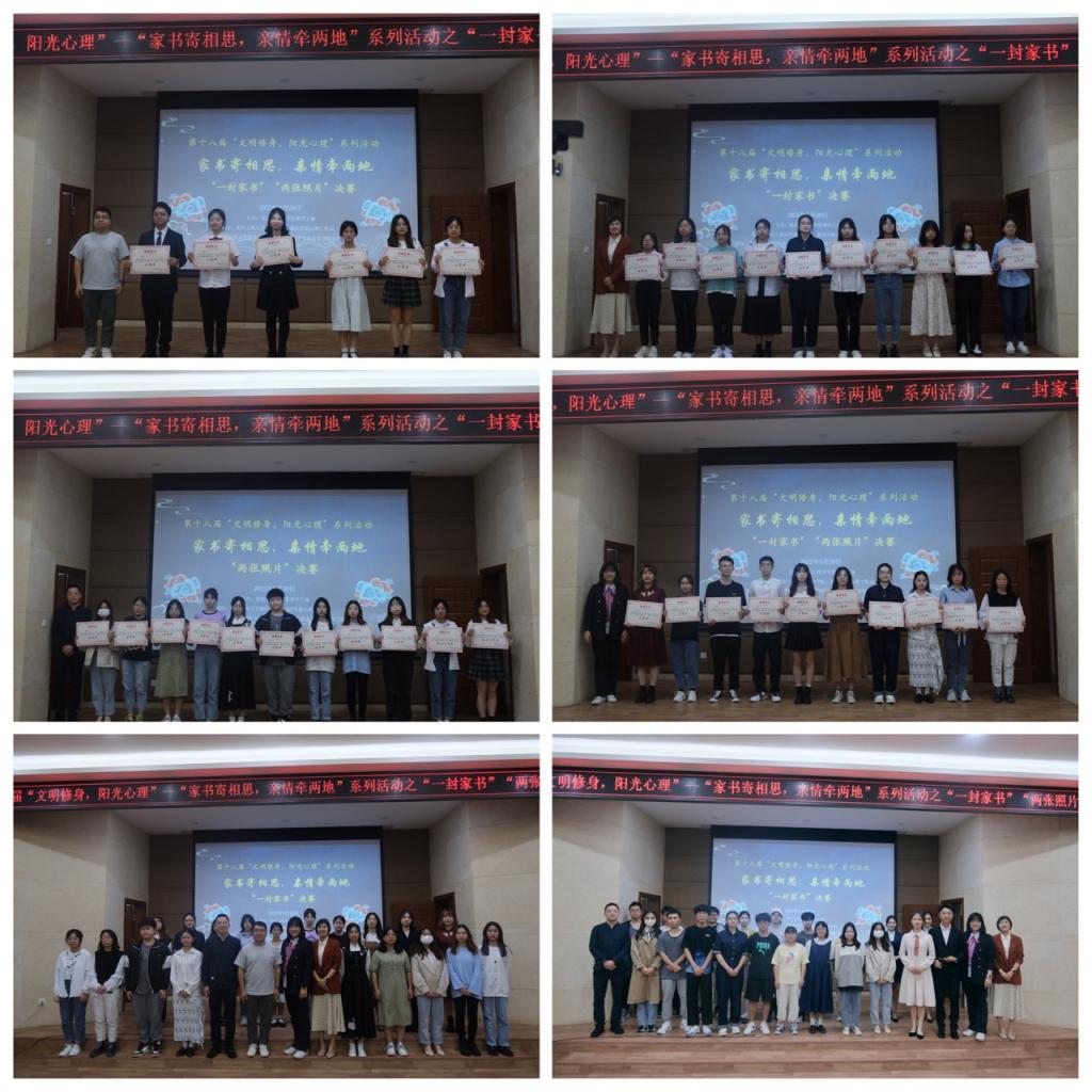 2022年5月20日,随着“一封家书”“两张照片”决赛的成功举办,由太阳集团tyc9728党委学工部、学生处主办,通识学院承办,ok138cn太阳集团协办的第十八届“文明修身·阳光心理”——“家书寄相思,亲情牵两地”系列活动圆满落幕。