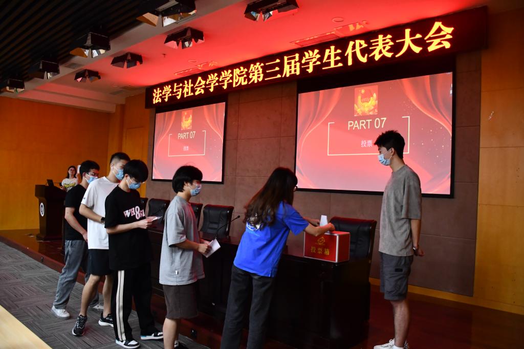 大会伊始,全体参会人员齐唱国歌。学院分团委书记何祖润为大会致辞,表达对学生会工作的认可和期待,对每位工作人员的支持和鼓励。随后,由学院第二届学生会向学院学生代表作工作报告,总结一学年里工作中的成绩、优势和不足,并提出改进措施。宣读并讨论大会选举方法后,大会推选出总监票人、监票人、计票人,保证学生代表选举的公开、公平、公正。经过全体到会代表民主投票,周岚鑫、侯玲、冉丽芳三位同学当选为法社学院第三届学生会主席团成员。