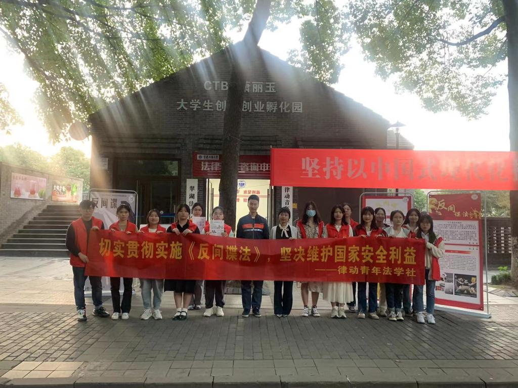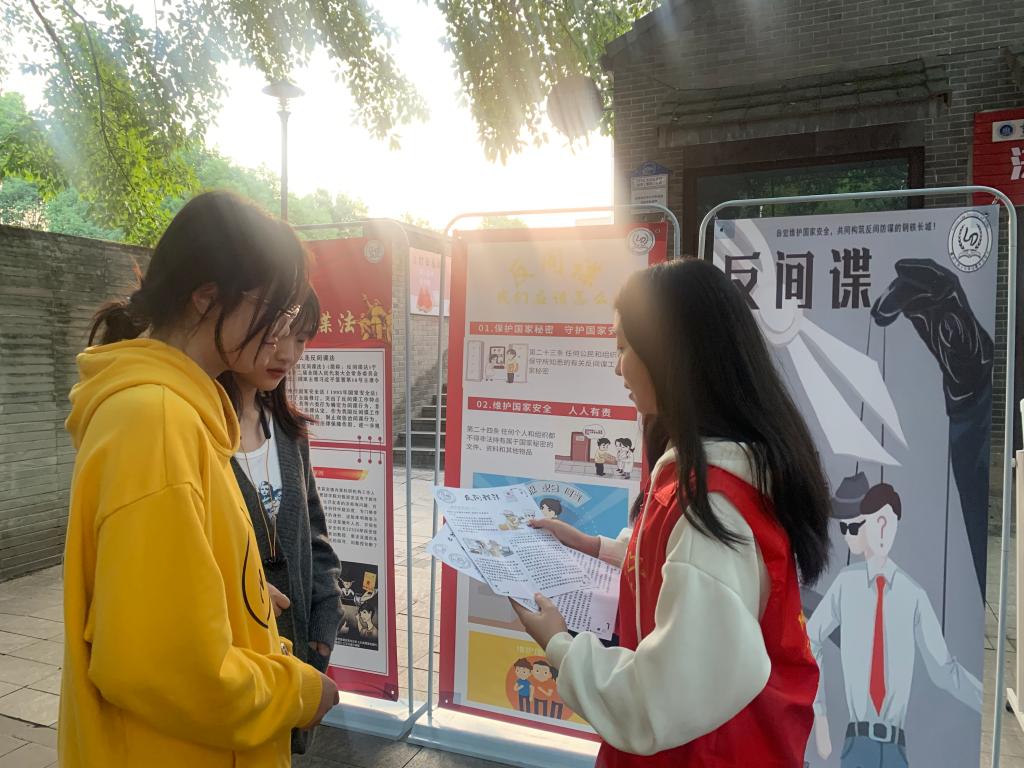 律动青年法学社成员通过悬挂横幅、摆放宣传海报展板以及发放宣传单等形式,向校内师生普及和宣传反间谍的相关法律法规,并就间谍行为以及公民如何履行好反间谍义务等相关问题进行讲解,利用发生在高校校园内的真实案例警示师生提高反间谍意识。