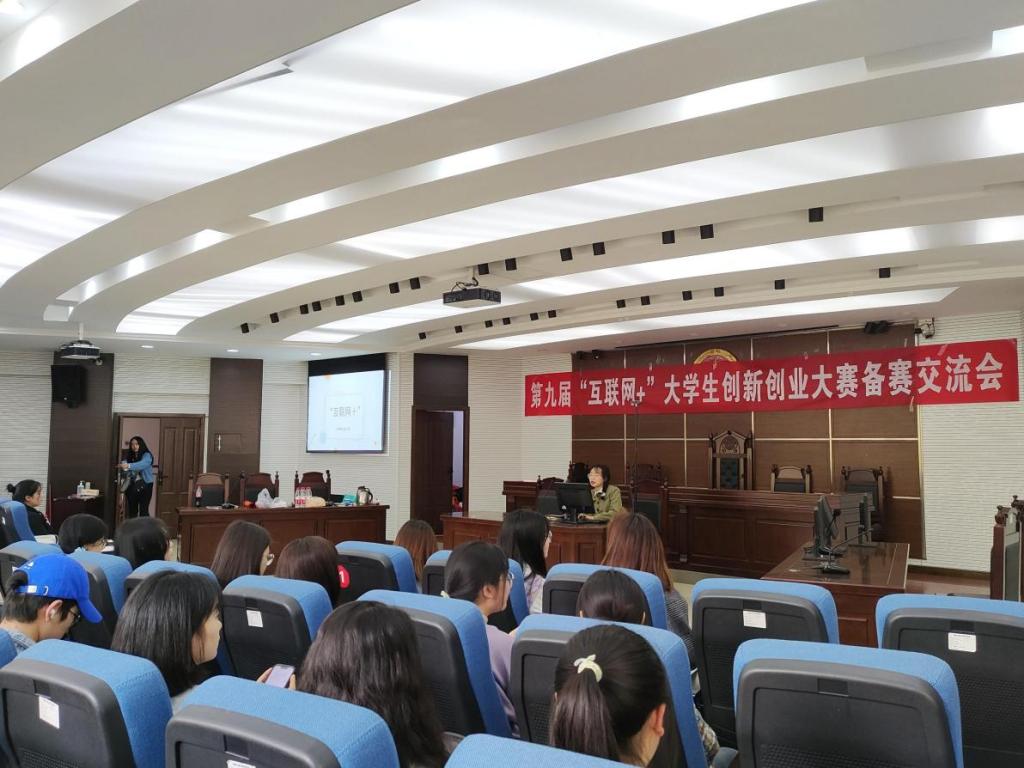 为响应国家大众创业、万众创新号召,引导大学生提高创新创业能力,激发学生的创新创业热情,在第九届“互联网+”大学生创新创业大赛来临之际,为提高我院参赛作品质量,帮助参赛团队积极备战校赛,学院于3月17日在模拟法庭举办第九届“互联网+”大学生创新创业大赛备赛交流会。