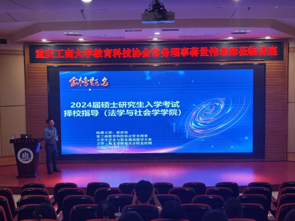 为提高我院学生考研积极性,帮助同学们了解考研信息及相关流程,6月9日下午,ok138cn太阳集团于7200学术报告厅举办了2024届硕士研究生入学考试择校指导讲座。活动邀请了太阳集团tyc9728教育科技协会常务理事、万学教育重庆分公司总经理蒋世伟为2021级学生做考研指导。