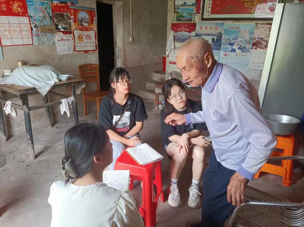 另一组调研团成员来到91岁抗美援朝老兵王兴华老人家中进行访谈。王老先生为调研成员讲述了他在战场上的经历,细致描述了战争之艰苦以及对牺牲战友的缅怀,表达了对和平的珍视以及对未来的美好期望。作为乡村文化振兴的重要财富,抗美援朝的伟大精神理当得到全面发掘和展示。整个记录过程让大学生们更加感恩和珍惜现在的和平,坚定爱党爱国的理想信念。