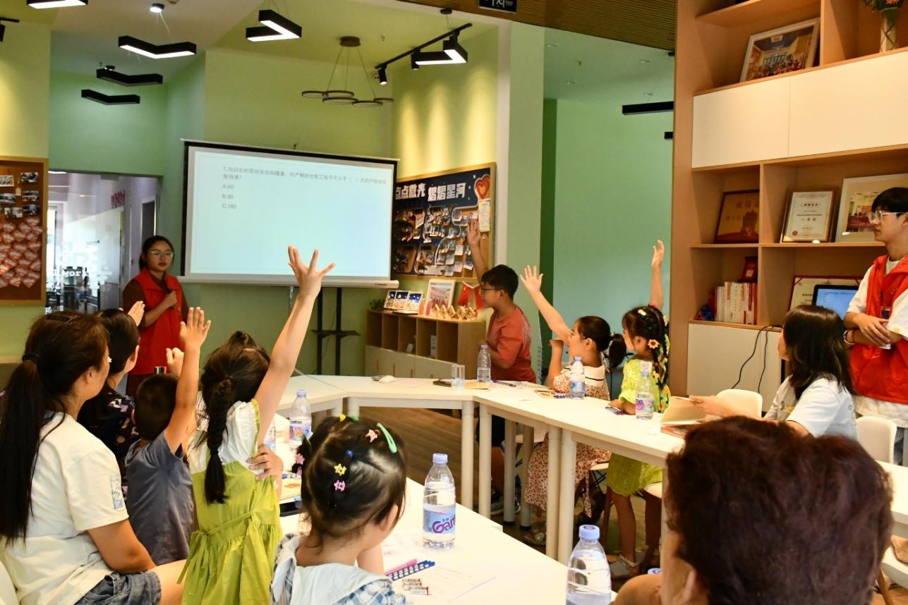 在志愿者的引导下,小朋友们和家长们一起阅读《习近平走进百姓家》节选,了解习近平总书记和百姓心连心的感人故事,体悟我国非凡十年中具有里程碑意义的大变革,小朋友和家长陆续分享了自己的阅读感受和收获。志愿者以游戏的方式带领小朋友们一起分辨了什么是好的家风,以及引导他们如何传承好家风。随后志愿者就《妇女权益保障法》的相关内容进行宣讲,通过分析具体案例,讲解了什么是妇女权益以及如何利用法律的手段保障其合法权益。