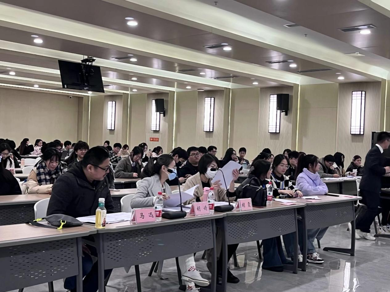 本次比赛初赛环节为线上案例报告海选,由4名法学专业教师匿名对70参赛队伍提交的案例分析报告进行打分评选,决赛环节为十佳案例答辩展示,邀请到法学专业教师胡霞、胡婧、马迅现场担任答辩评审现场答辩创新增加参赛小组相互提问以及观众提问互动环节各小组尽显神通,体现出扎实的理论基础及新颖的独特视角