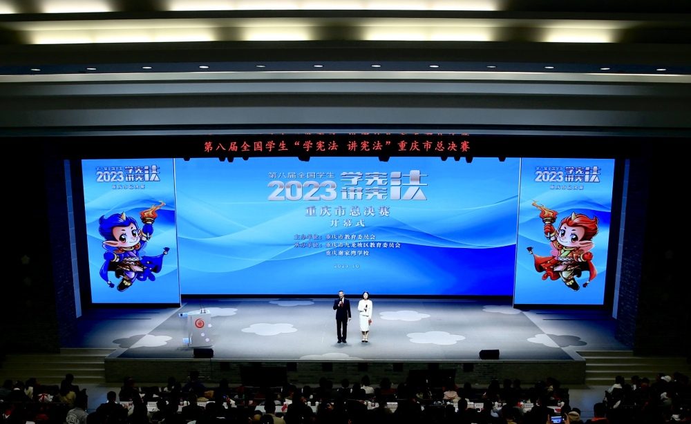 为全面贯彻落实党的二十大精神,深入学习贯彻习近平法治思想,推动青少年宪法宣传教育常态化长效化,第八届全国学生“学宪法 讲宪法”活动重庆市级决赛于2023年10月14日-15日在九龙坡区谢家湾学校成功举行。本次活动由重庆市教育委员会主办,重庆市教育科学研究院(重庆青少年法治教育研究中心)、九龙坡区教育委员会、重庆谢家湾学校承办,教育部全国青少年普法网协办。