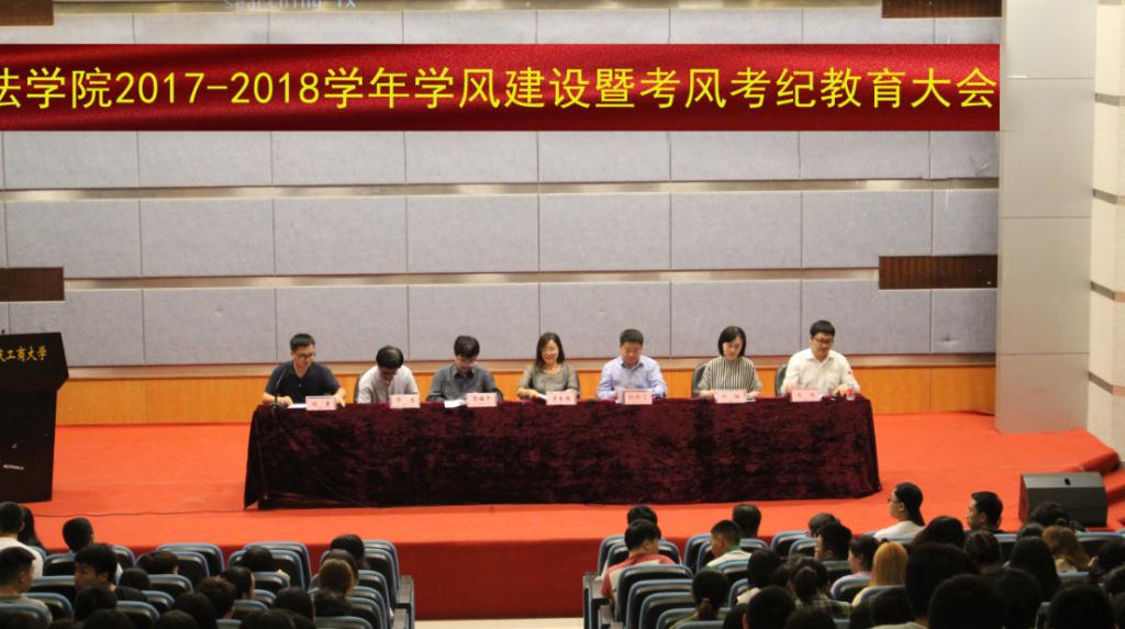 6月22日19:00,法学院2017-2018学年学风建设暨考风考纪教育大会在博智楼7100报告厅召开。法学院党总支书记李自维教授、院长杨和义教授、学生处副处长简福平副教授、副院长刘勇教授、党总支副书记林璐老师、系主任马迅老师、教师代表华鹰教授、各班辅导员以及法学院全院同学参加本次大会。会议由副院长刘勇主持。