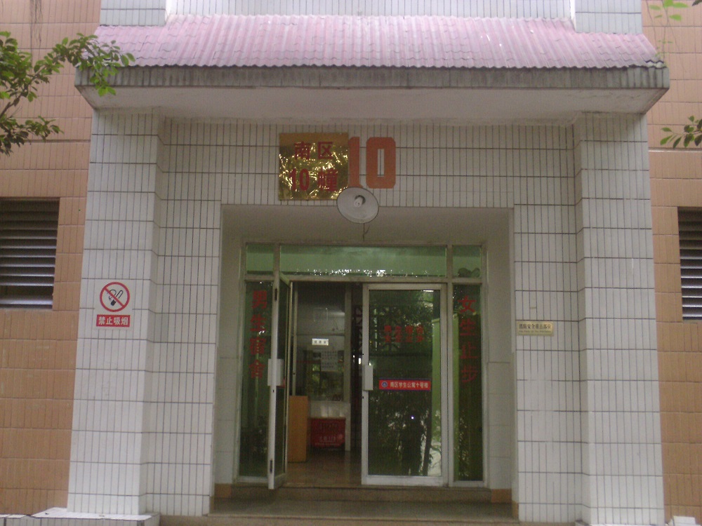 南区十号公寓有4层楼,每层有十三个房间,整体来说是一栋比较小型的公寓。这里居住的男生以法学院的为主,所以可以这样说,这是法学院男生的一个大家庭。楼栋共有两位宿舍管理老师,她们负责公寓的大大小小的工作,并且她们在学生的心目中和蔼可亲。除了楼管老师,还有七名楼管会干部,党员服务站和大学生自我管理委员会的负责人。这些干部配合着宿舍管理老师,维持着本楼栋的正常运转。