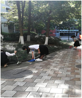 启动仪式结束后,在场的同学们分成四个小组在慧智楼至南十六公寓这一带开展清扫活动,捡拾垃圾、清理灌木丛堆,并且积极向同学们宣传开展校园清洁的重要性。大家兵分四路热情高涨,自带环保垃圾袋等工具,重点清理绿化带内及一些角落的白色垃圾,不放过一个塑料袋和一个矿泉水瓶。在一次次弯腰起身之后,白色垃圾被满满的装到垃圾袋中,经过两个小时的努力,慧智楼的环境焕然一新。同时,在拾捡的过程中,对同学们进行环保宣传,告诉大家保护环境人人有责,获得的在场同学们的广泛称赞。他们纷纷表示,环境卫生不仅依靠保洁阿姨来打扫,更要从自我做起,人人爱护好自己的校园。