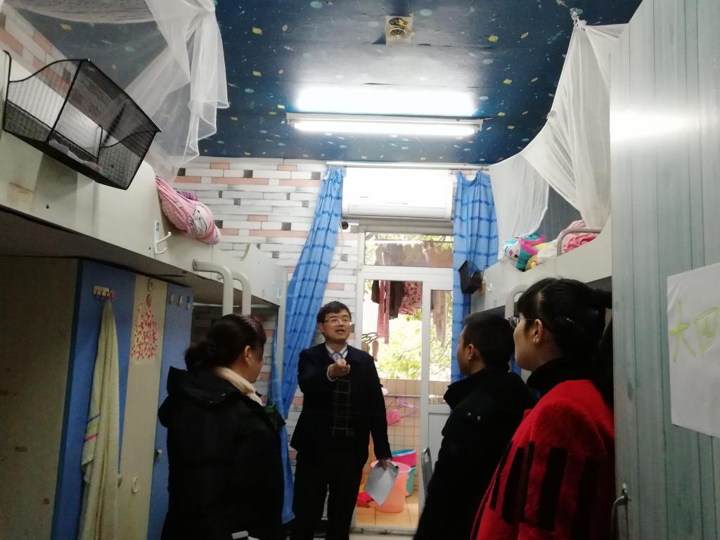 在宿管老师的带领下,领导及老师们详细检查了南16B1、南10整个楼栋内寝室以及外周环境。在检查过程中,重点对宿舍用电安全以及防火防盗等诸多方面进行检查,对现场发现的问题提出整改方案。在近两个小时的精心检查中,发现各个寝室表现良好,室内干净整洁,遵守公寓的规章制度安全用电。但是,仍然发现有极个别寝室存在使用违规电器的情况。简副书记当场记下相关寝室成员的名字,对其提出批评教育,同时让宿管老师没收保管其使用的大功率违规电器,防止其再次使用。此次宿舍安全的检查,提高了我院宿舍的安全生活环境,对打造安全楼栋,提升同学们寝室安全用电以及安全防范意识起到重要作用,使我院宿舍文化迈上了一个新的台阶。