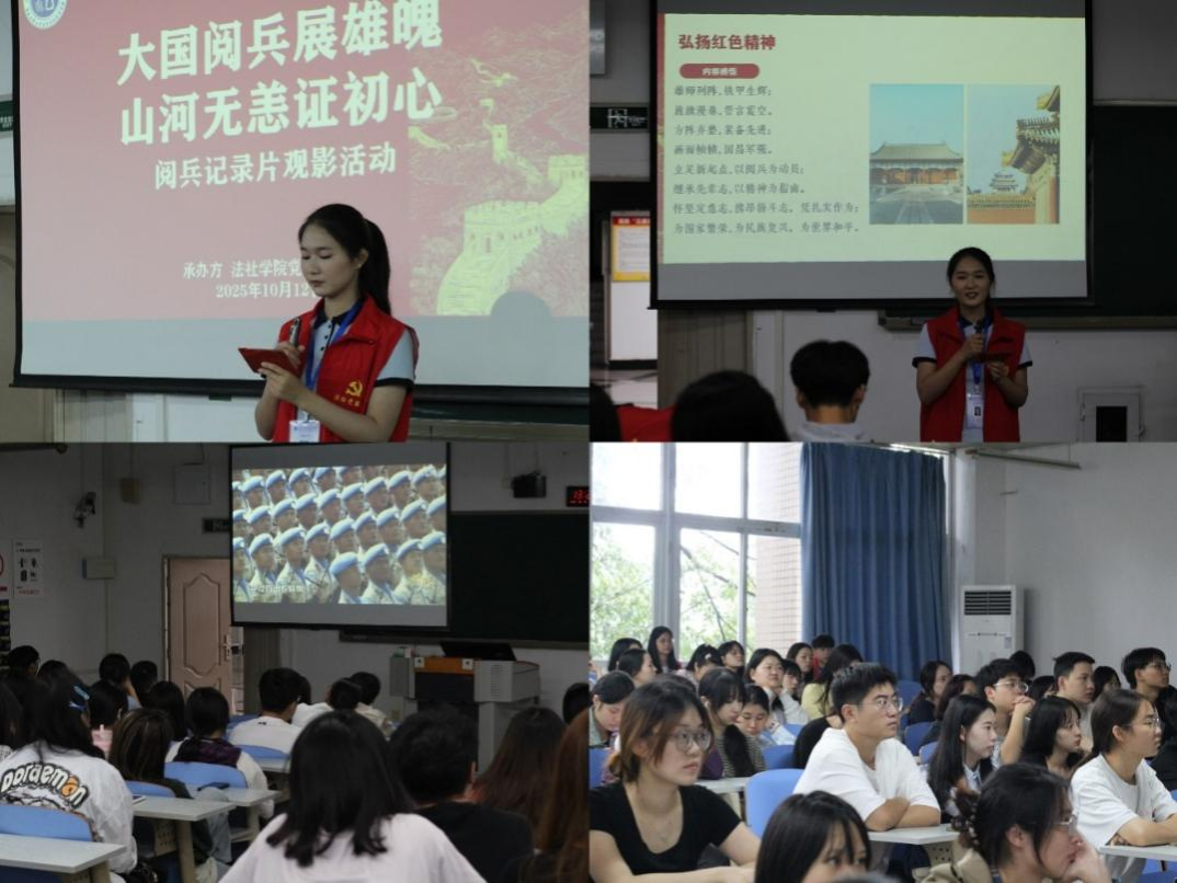 为弘扬爱国主义精神,引导青年学子感悟平凡中的坚守与担当,激发广大青年学子的民族自豪感与历史使命感,10月13日,ok138cn太阳集团党员服务站于慧智楼209教室开展了“大国阅兵展雄魄,山河无恙证初心”阅兵纪录片观影活动。