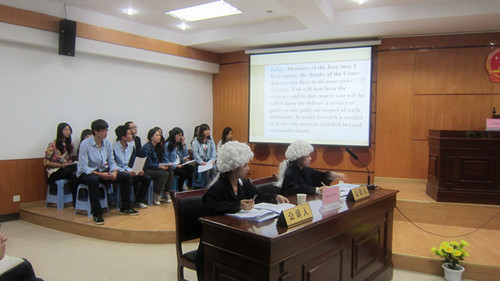 2014年4月24日晚,我院2011级同学在慧智楼模拟法庭举行了精彩的英式模拟审判活动,模拟审判案例选自英国某银行抢劫谋杀案。我院院长杨和义、部分外教和留学生以及我院、国际商学院一百余名师生参加了本次模拟庭审。