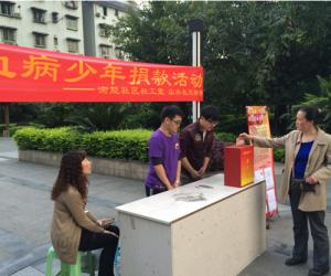 法学院义工志愿者们再次与渝能国际社区协作,于2014年4月6号-4月8号在渝能国际,4月14号-4月15号在山水长天,4月16号在学府雅居,4月17号-18号在苹果城这三个地方为16岁白血病少年杨德兴募捐。了解到少年杨德兴的情况后,法学院义工志愿者协会义不容辞的积极参与进来,维持秩序。社区居民纷纷慷慨解囊,捐款相助,在社区里谱写了一曲爱的乐章。截止到18号下午5点募捐总金额为2万4千元。