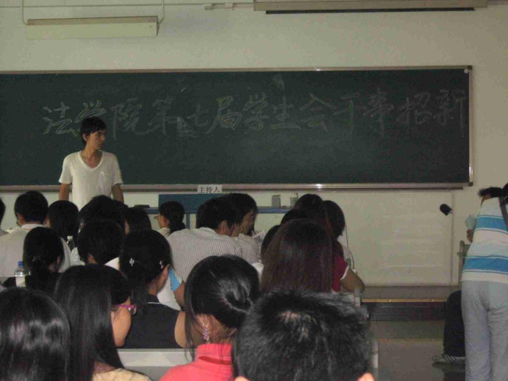 2008年9月27日,法学院第七届干事招新会在慧智楼90425教室举行。