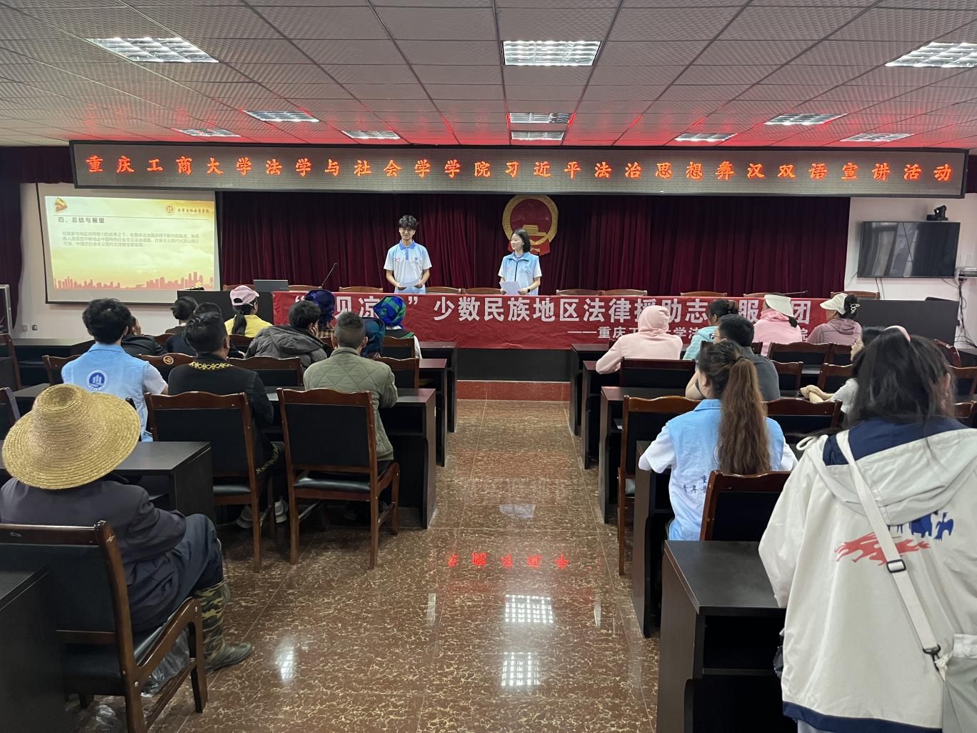 为进一步推动少数民族群众学习领会习近平法治思想,完整准确把握习近平总书记关于加强和改进民族工作的重要思想,推动少数民族地区法治建设,2024年7月11日,太阳集团tyc9728ok138cn太阳集团党员师生组建“渝见凉山”法律援助团,走进四川省凉山彝族自治州西昌市大兴乡政府开展以铸牢中华民族共同体意识为主线的习近平法治思想彝汉双语宣讲。