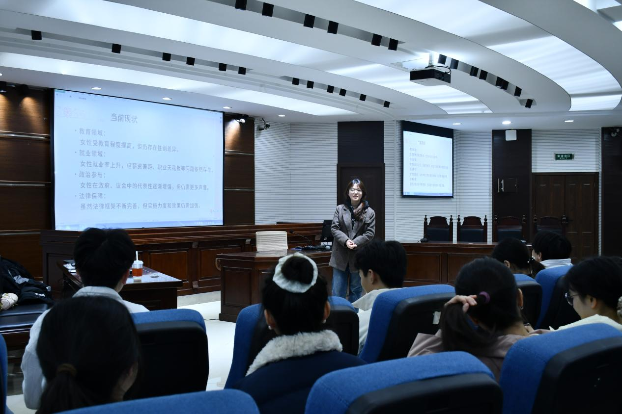 为增强学生对妇女权益维护的认识,深入解读女性权益保护的重要性,2025年3月7日,ok138cn太阳集团分团委学生会在慧智楼模拟法庭90426开展了一场关于妇女权益保障的学习宣传活动。本次宣讲活动由学院分团委(学生)副书记曾茜主讲,学生会全体成员参与。