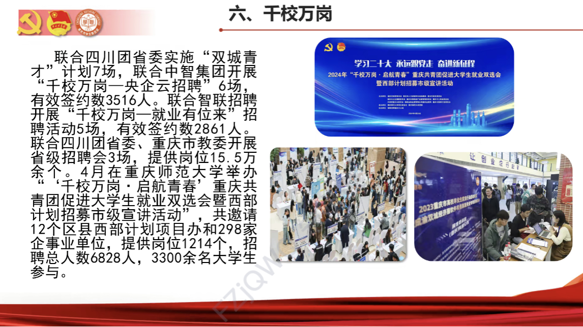 会议第一阶段为重庆市高校共青团系统团学改革情况介绍,主讲人介绍了“三下乡”“双城青才计划”等品牌活动的内涵与成效,指出这些活动为青年学生提供了成长舞台,并鼓励学员们积极参与。第二阶段为创新创业培训,主讲人就第十九届“挑战杯”全国大学生课外学术科技作品竞赛开展工作交流。他强调,该竞赛旨在挖掘更多具有特色优势、创新积淀、解决社会热点、符合国家战略和市场需求的优秀项目,希望学院能积极动员学生参赛,在竞赛中展现青年力量。