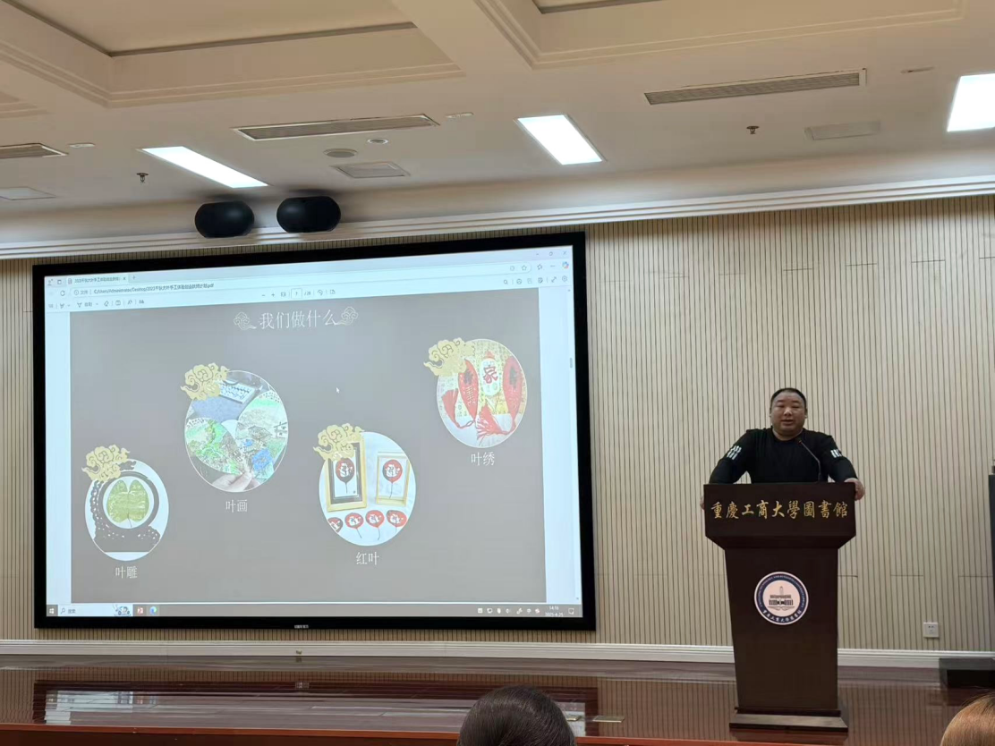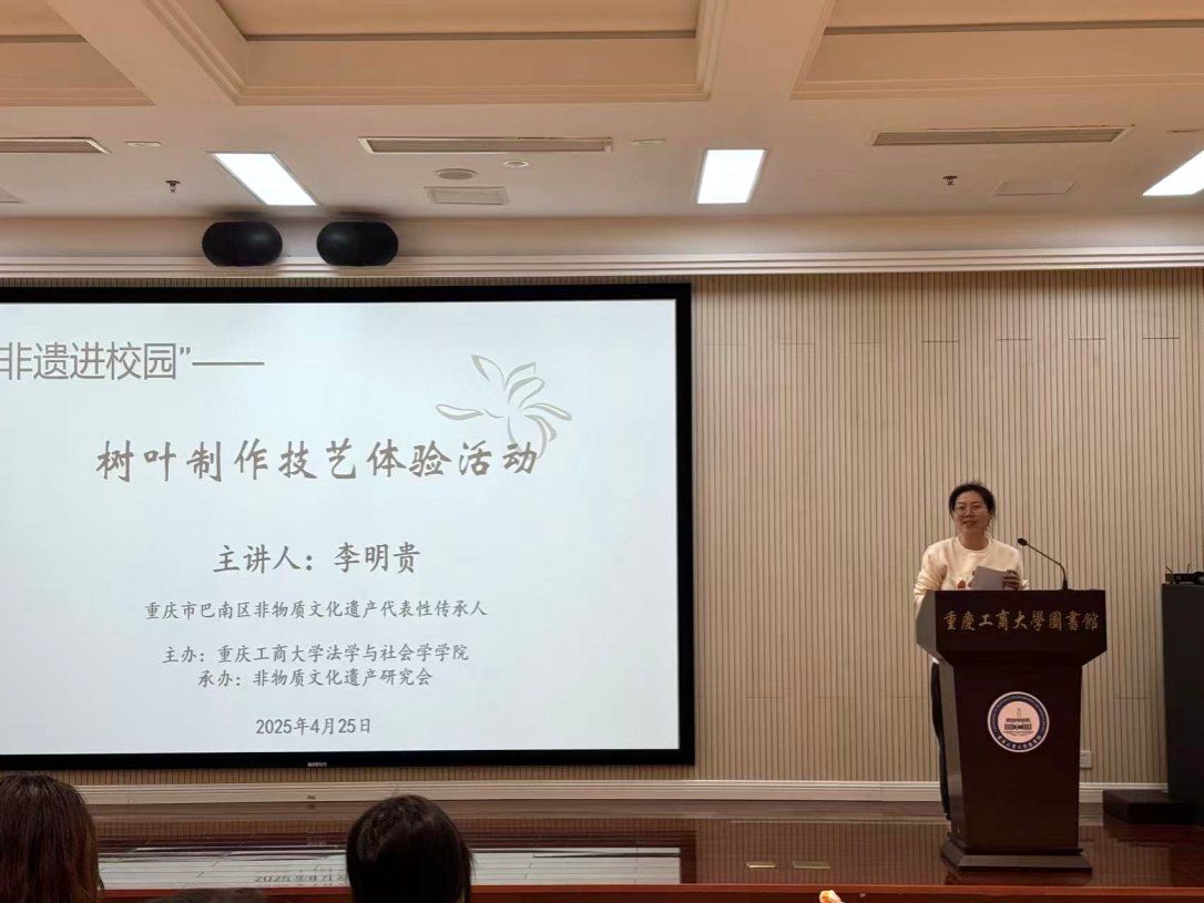 近日,由太阳集团tyc9728非物质文化遗产研究会主办的非遗文化体验活动在南岸校区图书馆视听阅览室举行。活动特邀国家级非物质文化遗产传承人李明贵现场展示树叶雕刻技艺,吸引了全校众多师生参与。活动由ok138cn太阳集团付海鸿老师担任主持人,通过“讲解+实践”的沉浸式体验,带领师生感受非遗技艺的魅力,活动全程互动热烈。