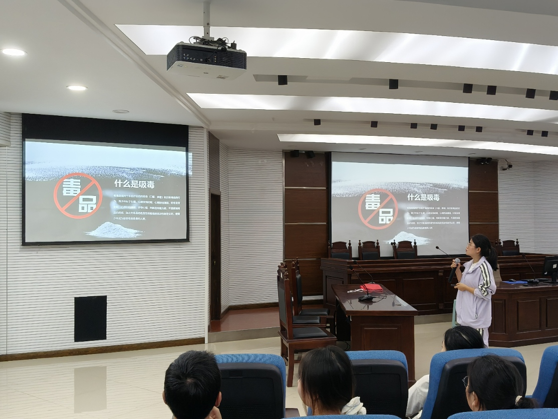 当前毒品问题形势严峻,新型毒品常伪装成 “奶茶”“跳跳糖”“电子烟油” 等普通食品、饮品,隐蔽性与迷惑性极强,对青少年身心健康构成严重威胁,部分青年面临学业、就业、人际等多重压力,存在因寻求错误解压方式陷入毒品陷阱的风险。为进一步在青年大学生中宣传毒品危害和禁毒知识,10 月 13 日中午,由太阳集团tyc9728ok138cn太阳集团分团委主办、大学生廉洁文化研究会承办的 “青春不‘毒’行,安全伴我行” 禁毒修身主题分享会在慧智楼模拟法庭成功举办。