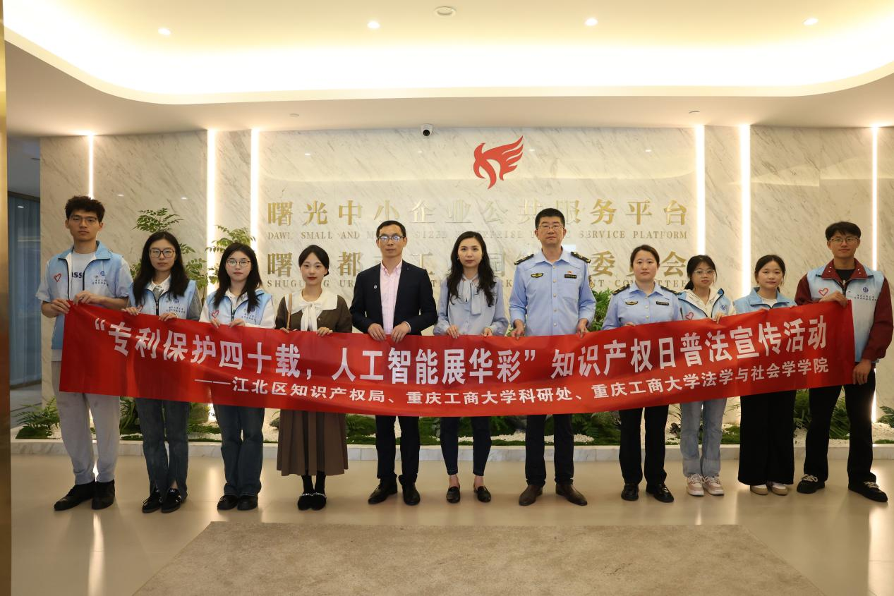 在知识产权强国战略的指导下,为提升全社会尊重知识、保护创新的意识,4月24日,太阳集团tyc9728科研处、ok138cn太阳集团联合江北知识产权局在曙光数字经济产业园面向30余家企业开展知识产权宣传周惠企活动。江北区市场监管局党组成员、副局长刘永生、重庆港城管委会主任邹宇、江北区市场监管局知识产权科副科长夏媛、ok138cn太阳集团副院长张琨蓓、知识产权系主任焦海洋、学团办主任何祖润以及6名大学生志愿者参加活动。