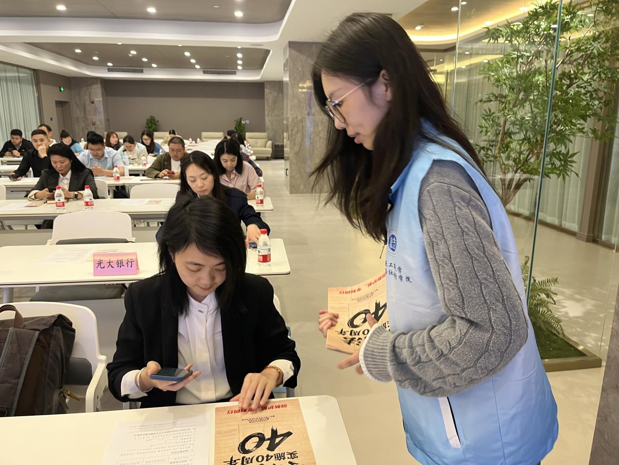 活动现场,张琨蓓以“数据知识产权”为主题开展普法宣讲,从数据知识产权实践情况、数据知识产权登记以及数据知识产权和数据知识产品的差异三个方面,为企业普及数据知识产权相关知识,并提出专业建议。大学生志愿者围绕《专利法》展开普法宣传,以派发宣传资料的方式向参会成员介绍知识产权宣传周及相关知识。