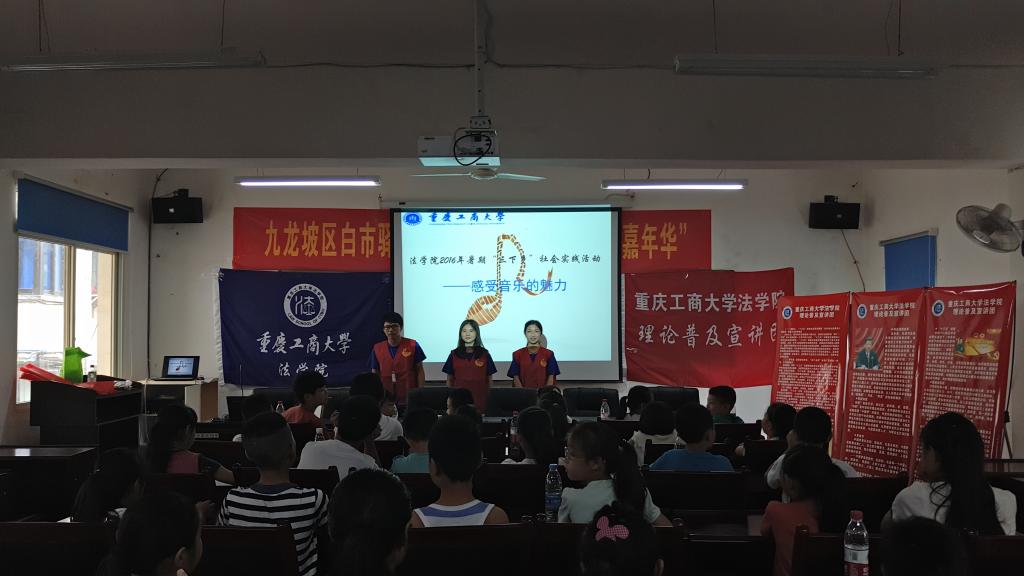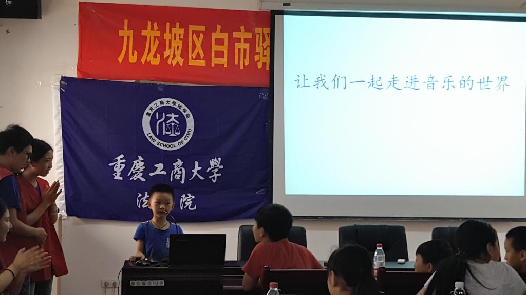 7月5日上午,太阳集团tyc9728法学院暑期“三下乡”社会实践理论普及宣讲团成员们在九龙坡区白市驿镇黄金社区开展了市民学校暑期嘉年华课堂的第二课——“跟我学唱歌”。伴随着优美的歌声,来到课堂的黄金社区的中小学生们,同实践团成员们度过了愉快的课堂时光。