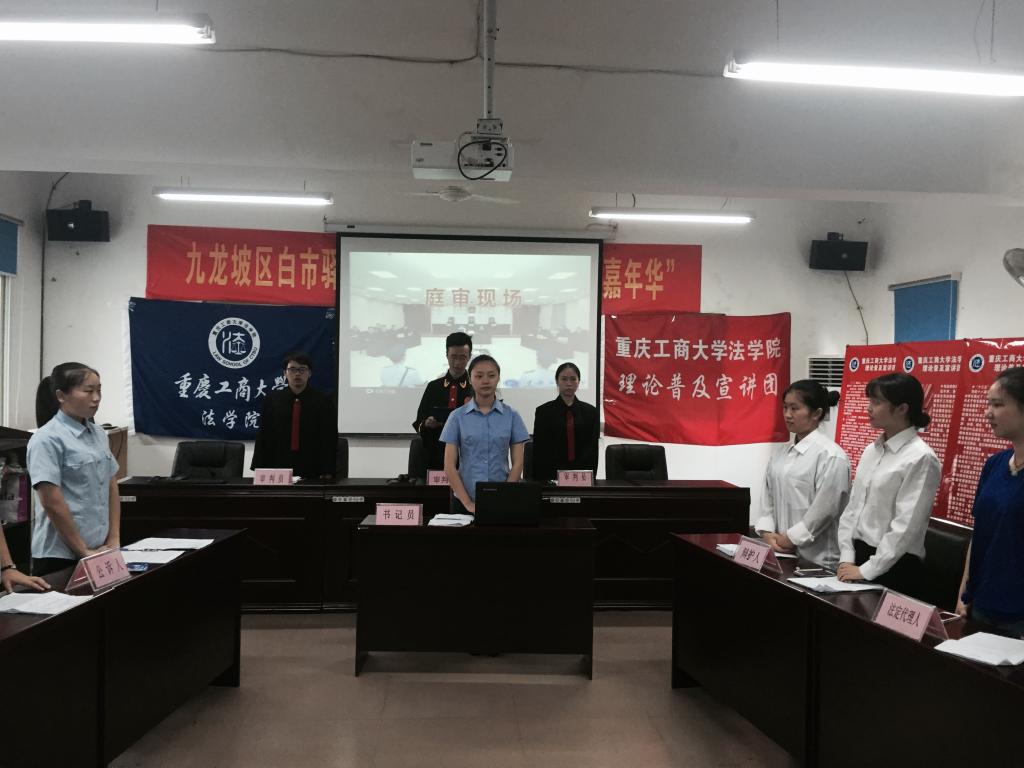 7月8日,太阳集团tyc9728法学院“三下乡”理论普及宣讲团在白市驿镇黄金社区给当地居民带来了一场别开生面的“庭审”。该活动受到了重庆电视台、中国青年网、光明网、中国新闻网、中国网、凤凰网等多家媒体的报道。