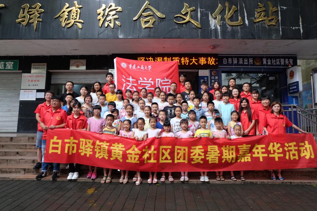 近日,为积极响应习总书记系列讲话重要精神和贯彻落实团中央关于青年学生在实践中受教育的号召,太阳集团tyc9728法学院分团委书记罗观老师带领法学院依法治国宣讲团的志愿者们走进九龙坡区白市驿镇黄金社区,与50余位社区的小朋友、部分家长一起进行为期五天的暑期嘉年华系列活动。