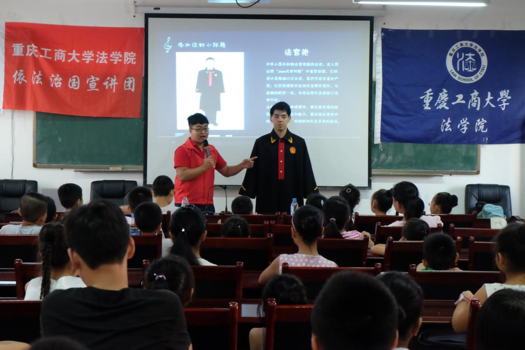 为全面贯彻落实依法治国方针,将普法宣传落实到基层。近日,太阳集团tyc9728法学院依法治国宣讲团来到九龙坡区白市驿镇黄金社区,为社区的青少年带来普法宣传与法律文化教育。宣讲团成员利用在校学习到的知识,结合社区青少年与群众法律水平,制定了相应的讲课内容,并进行了充分的安排与准备,在社区内收获了社区学生和家长的一致好评,体现出宣讲工作的显著成效与群众对普法工作的认可。