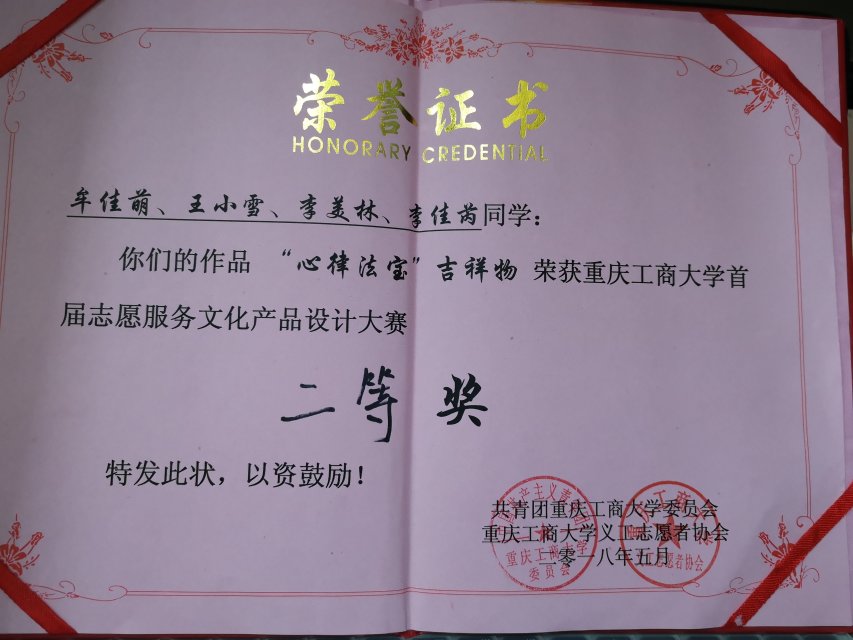 我院义协组织高度重视对志愿服务活动的践行和宣传,对以用自行设计特色文化产品来承载我们的志愿服务理念,大力宣传并深入、广泛开展志愿服务,投入大量集体合作精力。我院义协将设计成果“心律法宝”吉祥物与本次大赛的志愿服务理念紧密联系在一起,充分体现出我们的法学特色。相信我院义协在来年的志愿者服务文化产品大赛中会取得更加优异的成绩!(文/钱勇)