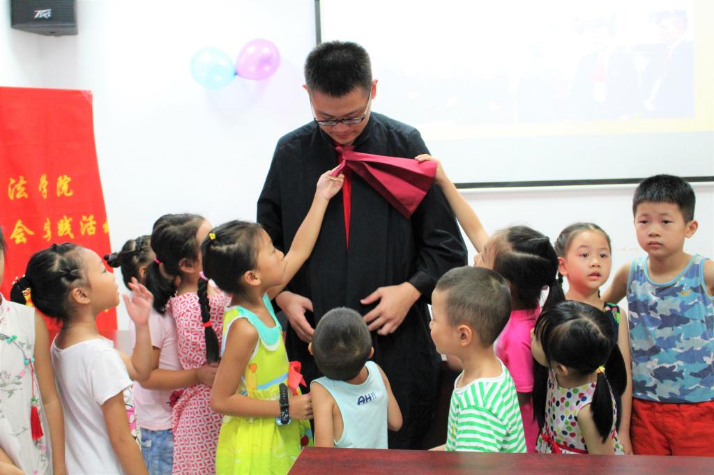 “哇,姐姐这个‘怪兽’好可爱哦”“哥哥这个法官袍好帅,我可以穿一下吗?”……