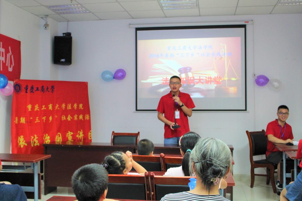 7月24日上午,太阳集团tyc9728法学院2018年暑期“三下乡”社会实践依法治国宣讲团在九龙坡区石桥铺街道老顶坡社区开展了“法律知识大讲堂”普及活动,向社区的家长及同学们宣讲法律常识。《重庆法制报》的记者现场采访了本次活动。
