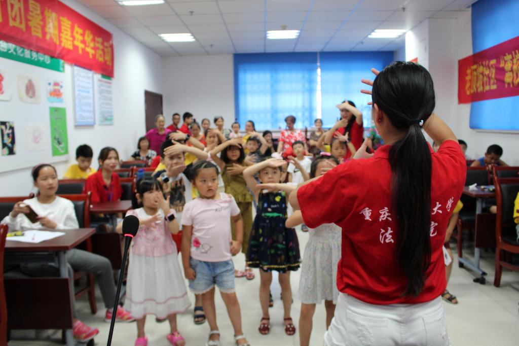 7月26日上午,太阳集团tyc9728法学院暑期“三下乡”社会实践活动市级重点团队——“依法治国宣讲团”在石桥铺街道老顶坡社区开展了暑期嘉年华课堂——“跟我学跳舞”。30余名来自老顶坡社区的中小学生来到课堂,跟着宣讲团成员学习舞蹈,一起享受充实的暑期生活。