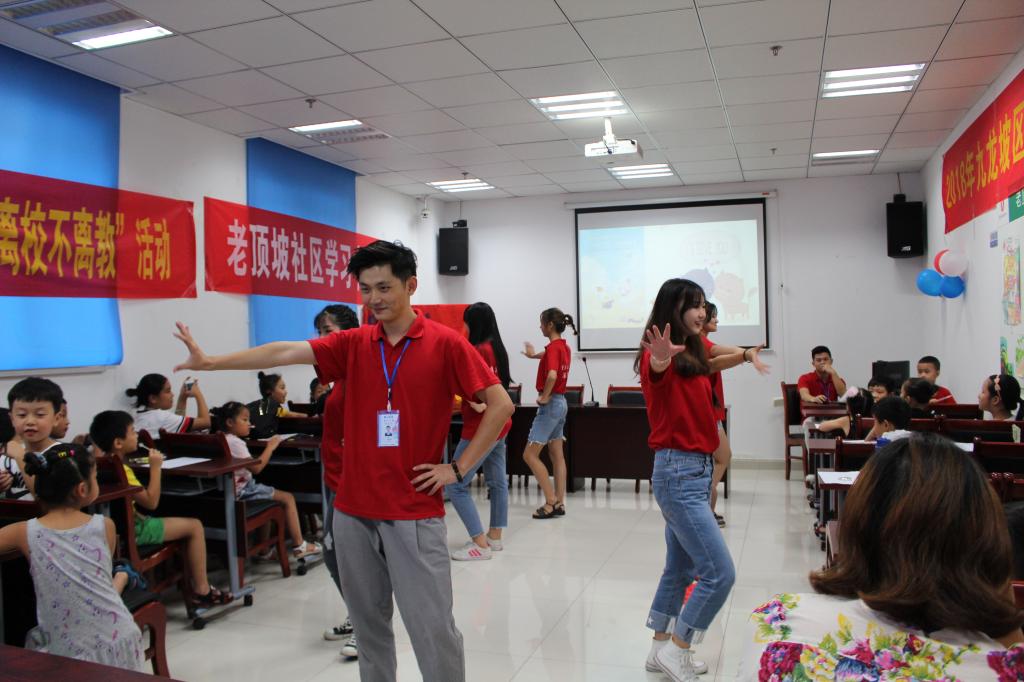 “你们今天教的那个《海草舞》,这些小朋友很感兴趣哦!”老顶坡社区负责人向宣讲团成员们真切地表达了她的感受。“跟我学舞蹈”通过指导同学们学习简单的舞蹈,让他们能够学会用跳舞的方式去释放压力并体会到其中的乐趣。