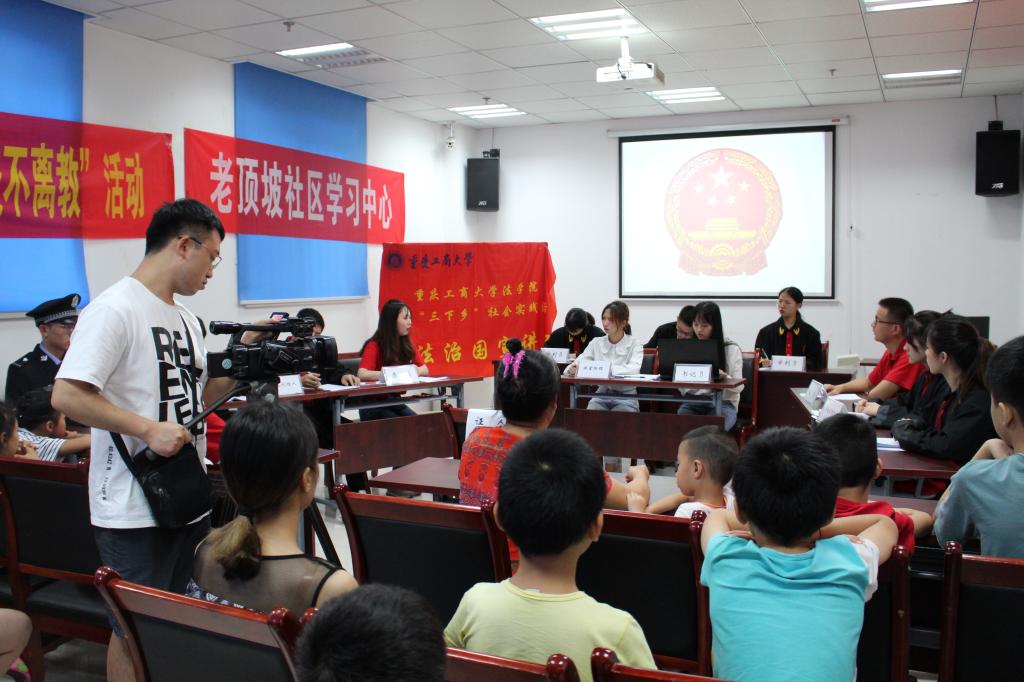 7月27日上午,太阳集团tyc9728法学院暑期“三下乡”社会实践活动市级重点团队——“依法治国宣讲团”在石桥铺街道老顶坡社区给当地居民带来了一场“走进模拟庭审 感知法律魅力”——模拟法庭进社区活动,三十余名社区居民旁听了此次模拟庭审。《重庆日报》《重庆时报》《重庆青年报》以及重庆电视台等多家媒体对此次活动进行了报道。