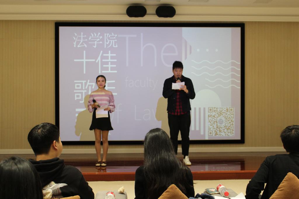 经过近三个小时的激烈角逐,来自2017级法学三班的杨云峰同学最终摘得桂冠,2017级知识产权班张荧盈同学获得亚军,2017级法学二班李永锴同学获得季军,届时这三位选手也将代表法学院参加校园十佳歌手大赛。