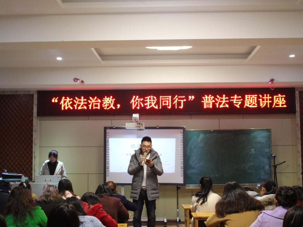 普法活动的开展一方面是为了增强教师的法律观念和守法意识,落实坚持依法治教的总体方针,这无论是对学生的成长还是对老师的维权都有重要意义;另一方面也有利于我们法科生了解到现阶段教师所缺少的法律知识,发展发掘我们自己的学术思想及方向。时间总是匆匆走过,萦绕在耳边的欢笑声宣告了此次活动的落幕。愿依法治教与你我一路相伴,今后的道路定会是一路芬芳。