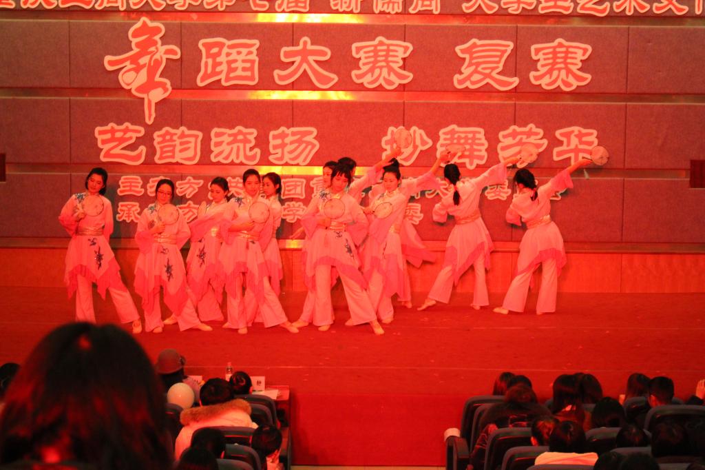主持人宣布比赛开始,现场的气氛立刻活跃了起来,各代表队依次上场。有的学院选择了优美的民族舞,有的学院则表演了流行的现代舞。而我院则选择古风歌手刘珂矣演唱的一首《半壶纱》作为背景音乐,飘逸流畅的旋律、清雅从容的弹唱,无不蕴藏着一股超凡脱尘的净心能量。随着古典柔美的旋律响起,队员们从一侧帷幕奔出,汇聚在舞台中央,嵌着音乐的节拍缓缓起舞,深情的表情,曼妙的身姿,无不书写着属于她们的青春活力和时代传奇。一时间全场都沉浸在这绝美的意境中,最终也博得了在场观众们一致的掌声。表演完毕,林璐副书记与罗观老师来到后台同队员们合影留念。最终,经过评委老师们严谨的评分过后,决出了进入决赛的12支代表队,我院首次参赛便成功杀入决赛,可喜可贺。